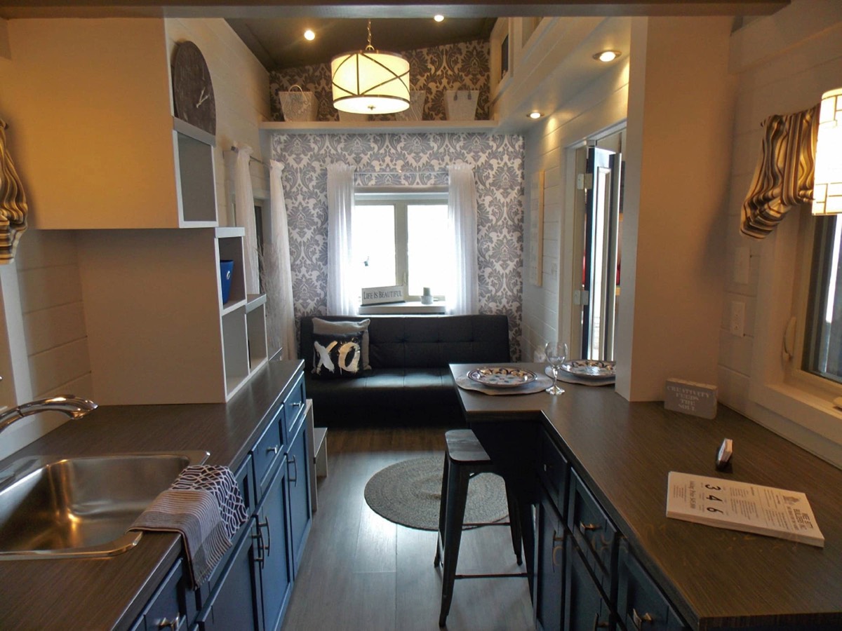 die Küche mit Kühlschrank rechts unten.